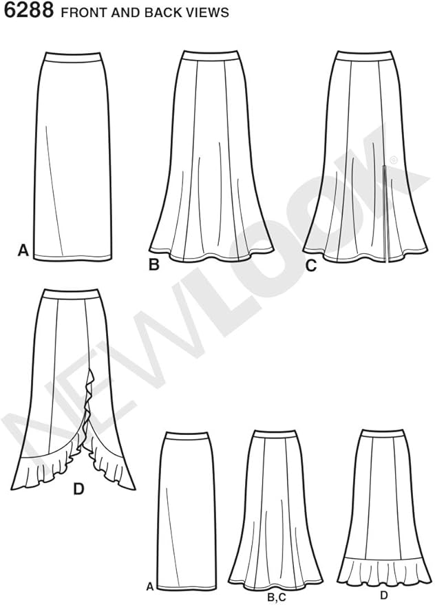 New Look Sewing Pattern 6288 Misses Pull On Knit Skirts Size A White 36 48 Amazon Co Uk Home Kitchen